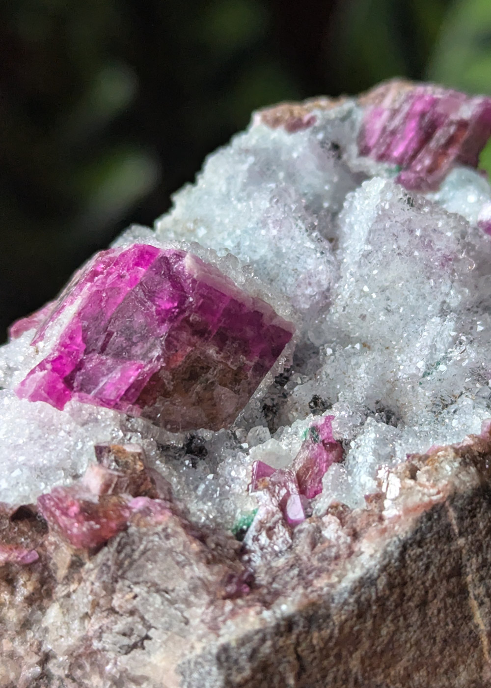 La cobaltocalcite cristallisée du Congo fascine par sa teinte rose intense, vibrante.